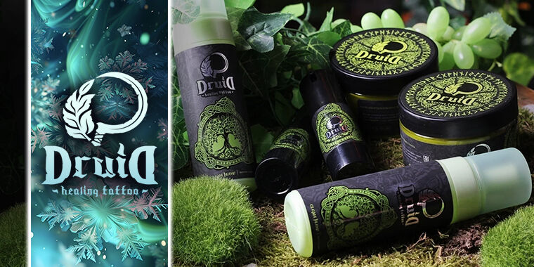 Ассортимент продукции от бренда Druid Healing Tattoo